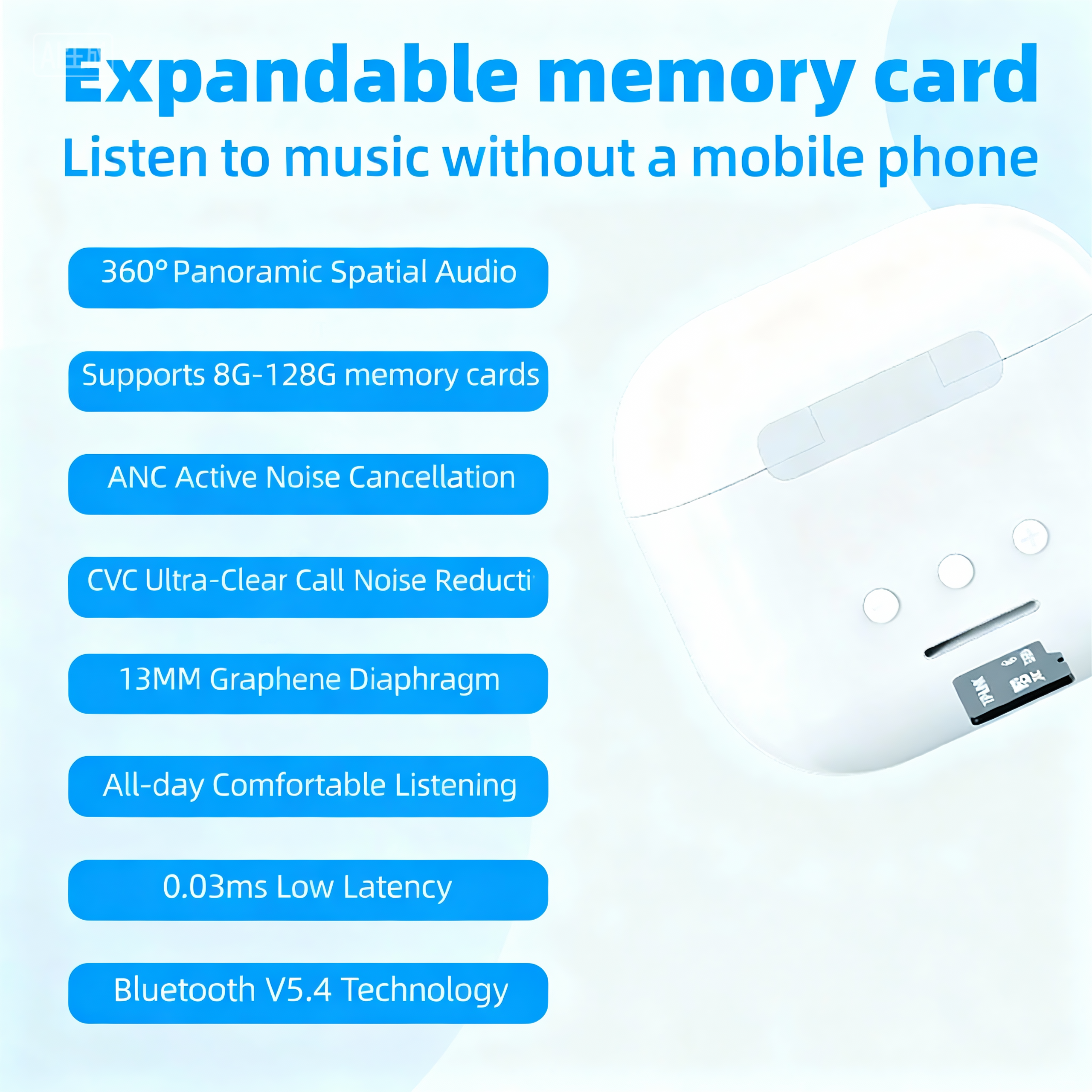 Wireless Earphone with Memory Card
